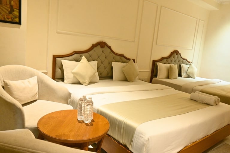 At Hotel Royal Comfort, we offer a wide range of accommodation options to suit your needs – from cozy Single Rooms for solo travelers to spacious Triple Bed and Four Bed Rooms for families and groups. For guests who seek a touch of luxury, our Super Deluxe Rooms, elegant Suites, and the grand Royal Suite provide the perfect blend of comfort and sophistication. Our Twin Rooms are ideal for friends or colleagues who want both convenience and privacy.